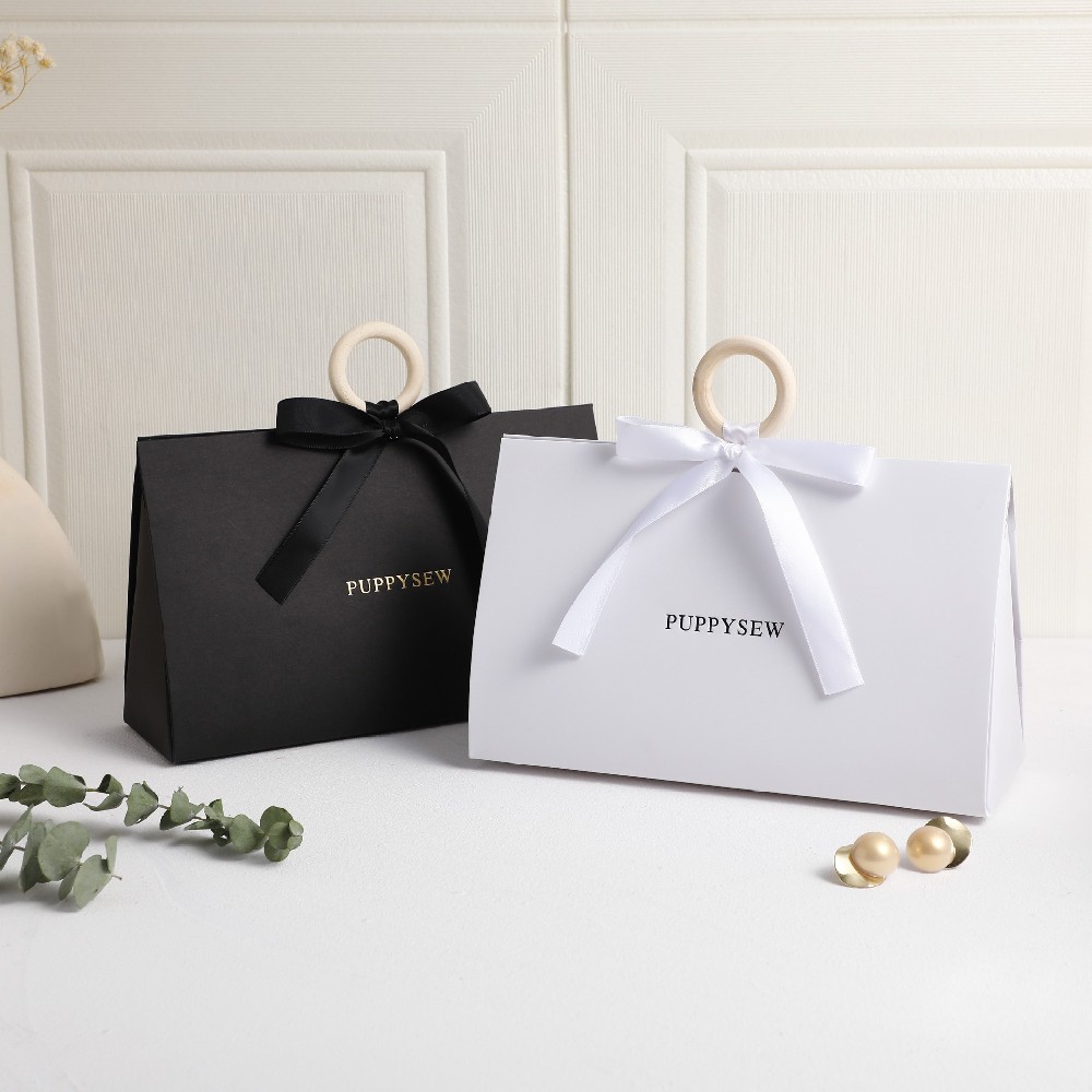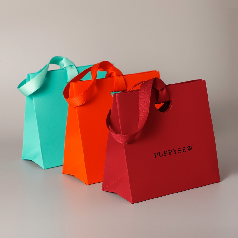 PUPPYSEW Paper bags with flaps, tote bags, gift bags, and cosmetic bags are available with custom logo printing.