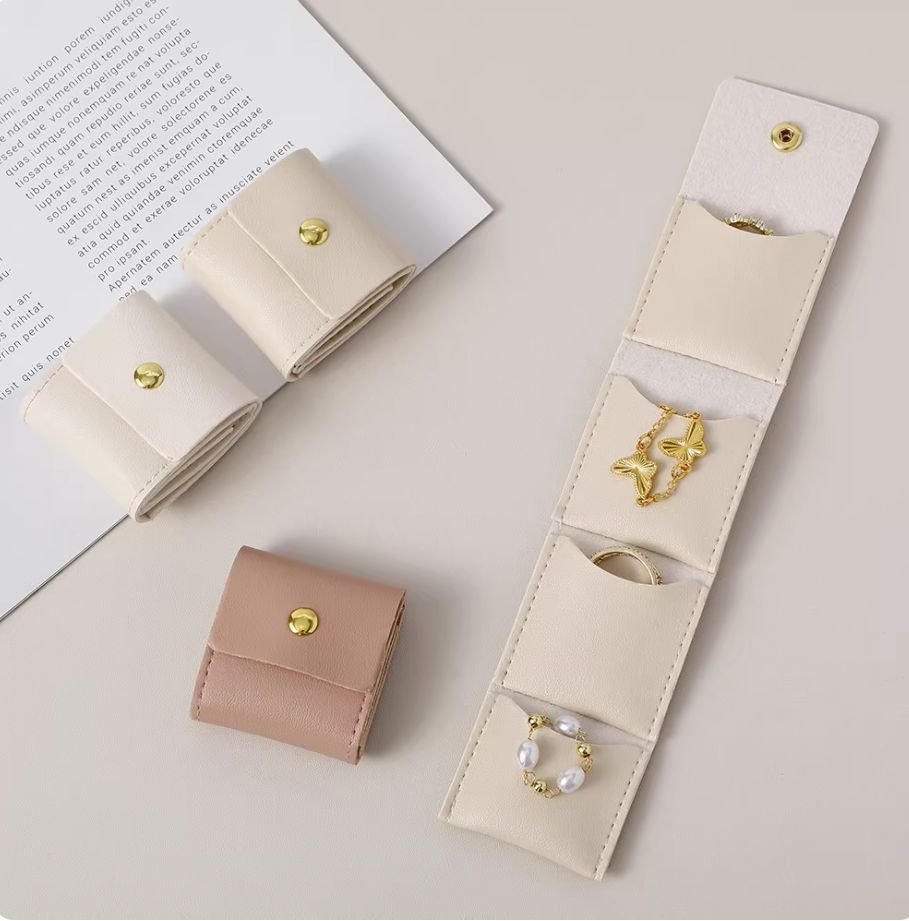Custom Logo Faux Leather Jewelry Bag, Soft Button Packaging