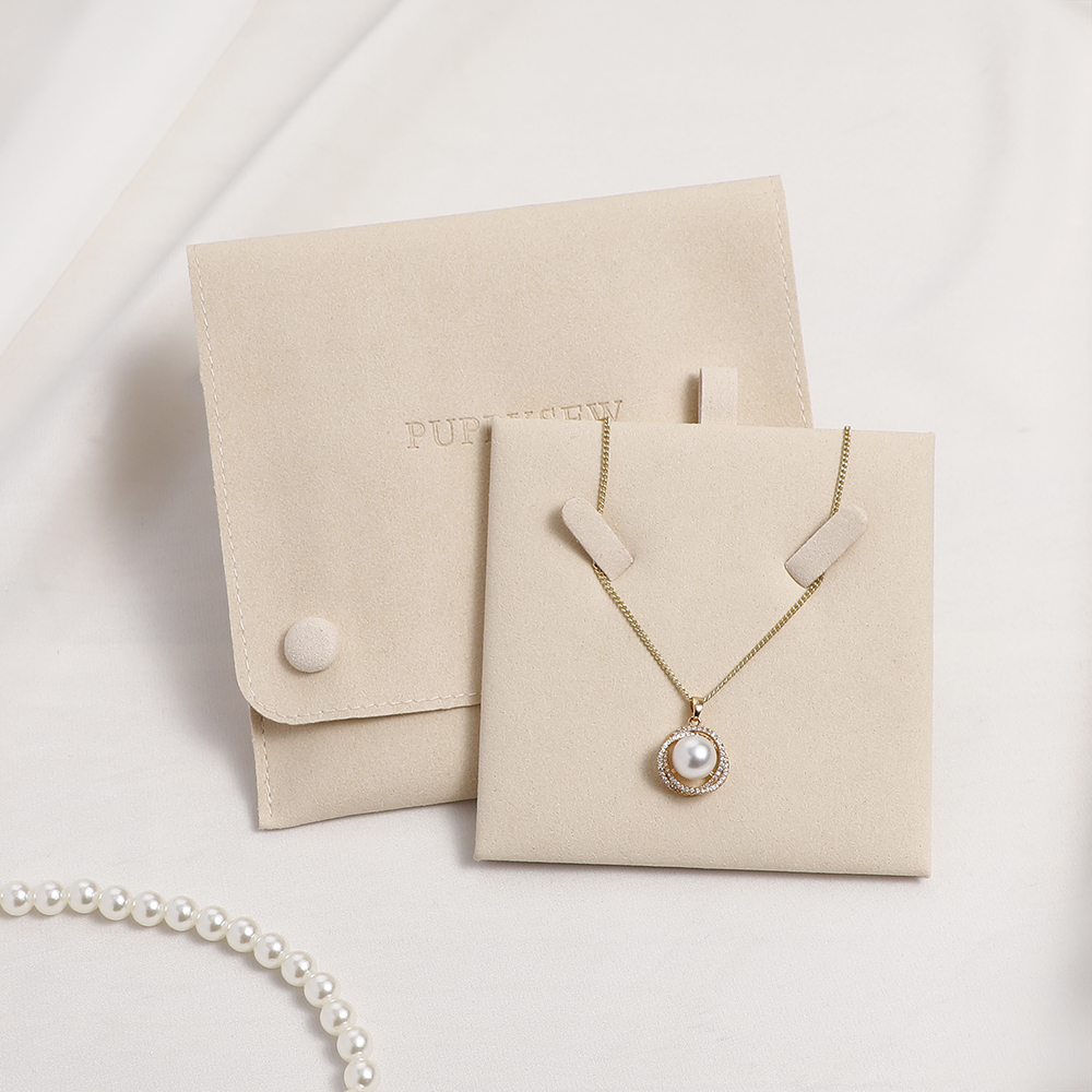 PUPPYSEW Premium microfiber jewelry pouch with snap closure necklace clip storage pouch portable pendant pouch