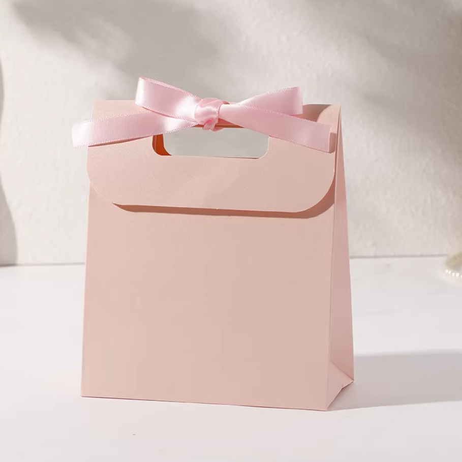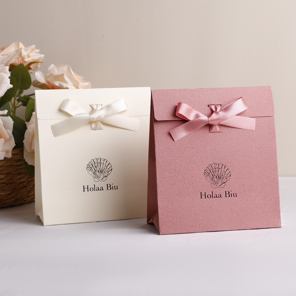 PUPPYSEW Custom Pink Ribbon Paper Bags, Luxury Boutique Packaging, Personalized Logo